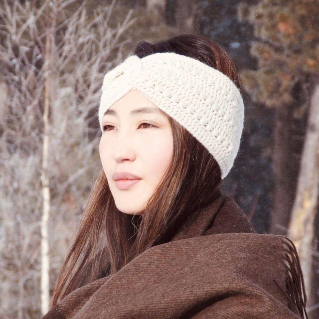 ジャルガルマーさんとトゥグスさん 手編みの作品を作るお2人のヘアバンドです。 羊毛毛糸で編まれた模様は 花の咲く道を辿るような 心弾む景色を見ているようです。 シンプルな原毛色は装いを邪魔せず だけど少し物足りない時にぴったりのアイテム。 耳もすっぽり覆ってくれます。 リブ編みのようによく伸びるタイプではないので 首元から頭に向かってあげる時に 少しきつさを感じる方もいらっしゃるかもしれません。 (多少は伸びます) 身につけてしまえば 締め付け感のない着け心地です。 首元に下ろしてしまって ネックウォーマーのようにしても素敵だと思います。 個体差があります。 下記ご参考ください。 pic4左から グレー(いちばんゆったりしています) 1周 約54cm 横幅 約10.5cm ナチュラルホワイト(小さめ) 1周 約47cm 横幅 約10cm ナチュラルホワイト 1周 約50cm 横幅 約10cm ナチュラルホワイト(リボン型) 1周 約53.5cm 横幅 約8.5cm 羊毛100%