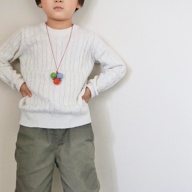 モンゴル遊牧民の経済的自立を支援する NGO・フフオボーさんから届きました。 フェルトボールと様々なパーツを コットン紐で繋げた 軽くて可愛いネックレスです。 フフオボーさんの商品は 羊毛の手触りの良さが抜群 お子様向けの商品を取り揃えていらっしゃるのも 代表の滑志田さんが モンゴル国で幼児教育に携わっていらっしゃったからかも知れません。 初めてアクセサリーに興味を持ち始める頃のお子様に フェルトの優しい手触りや フェルトボールとパーツ色の組み合わせ まだら染のコットン紐など あちこちに楽しみが詰まっています。 紐の長さは調整可能で、最長約60cmです。 フフオボーさんHP https://sites.google.com/site/testwata/