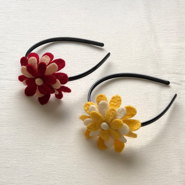 フェルトのクリスマスオーナメントを 作ってくださる工房から 小さなお子様向けのカチューシャが届きました。 大ぶりなフェルトの花が 気分を上げてくれそう。 見ているだけでも 明るい気分になります。 裏面は写真3枚目のような作りなので 物理的に花の位置を変えられそうなのですが カチューシャのギザギザ部分が抑えになるので 身につけている時に花が あっちこっちに行く心配はなさそうです。 めいいっぱいおしゃれを楽しんでくださいね。
