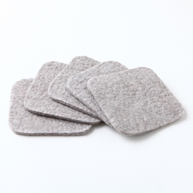 地方から首都へ移住してきた女性たちの 経済的自立を支援するNGOから 上質なコースターが届きました。 均一な厚みとムラのない仕上がりは 商品づくりに対する 一貫した姿勢を感じさせます。 手触りは少し硬めです。 石鹸水を揉み込んで作る モンゴルの伝統的なフェルト作り。 革を端に縫い付けたり 糸で縁取りしてみたり ニードルで模様を刺し込んでいくのも 面白そうです。 もちろんそのまま シンプルなコースターとしても。 シックな色合いが揃いました。 色々な方法でお楽しみください。 10.5cm×10.5cm×6mm