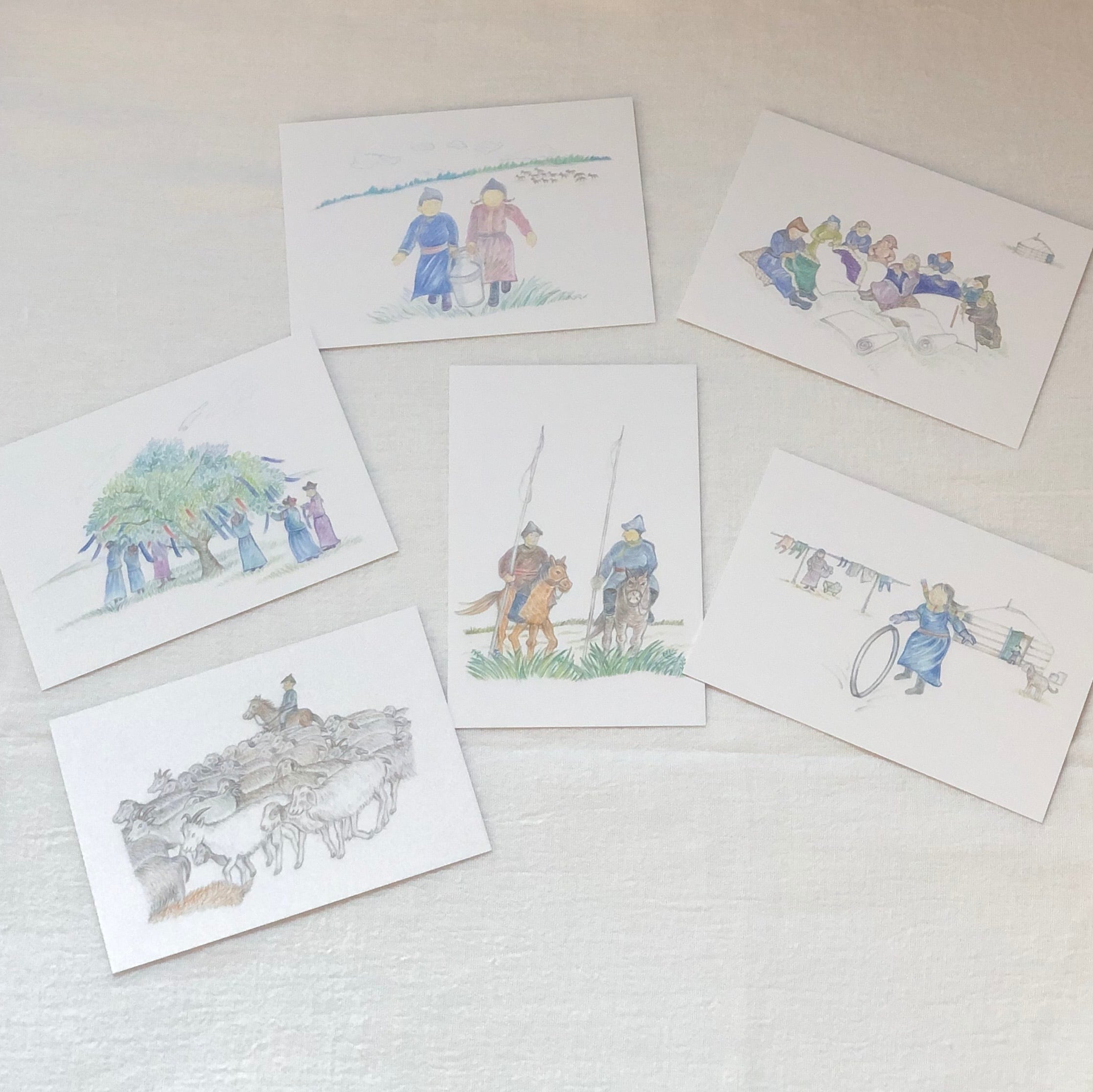 アリウナ先生の故郷・フルンボイル草原を中心に描かれたポストカードです。