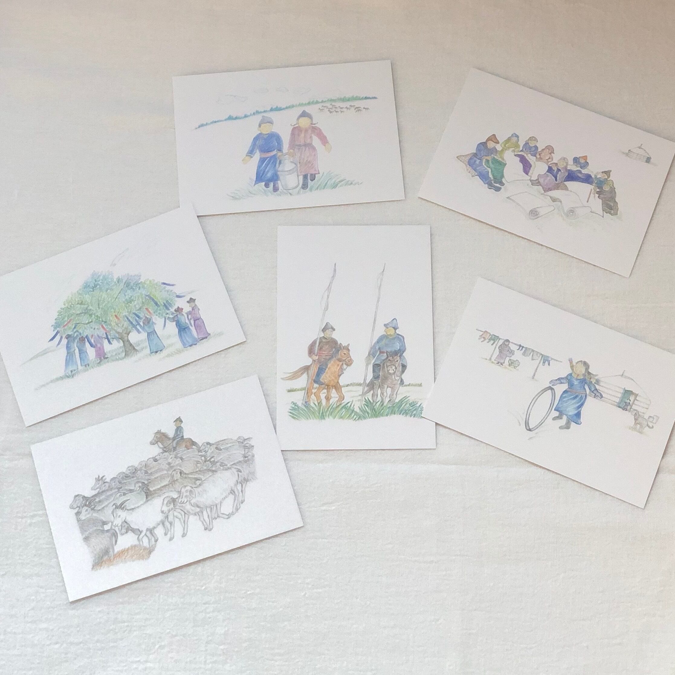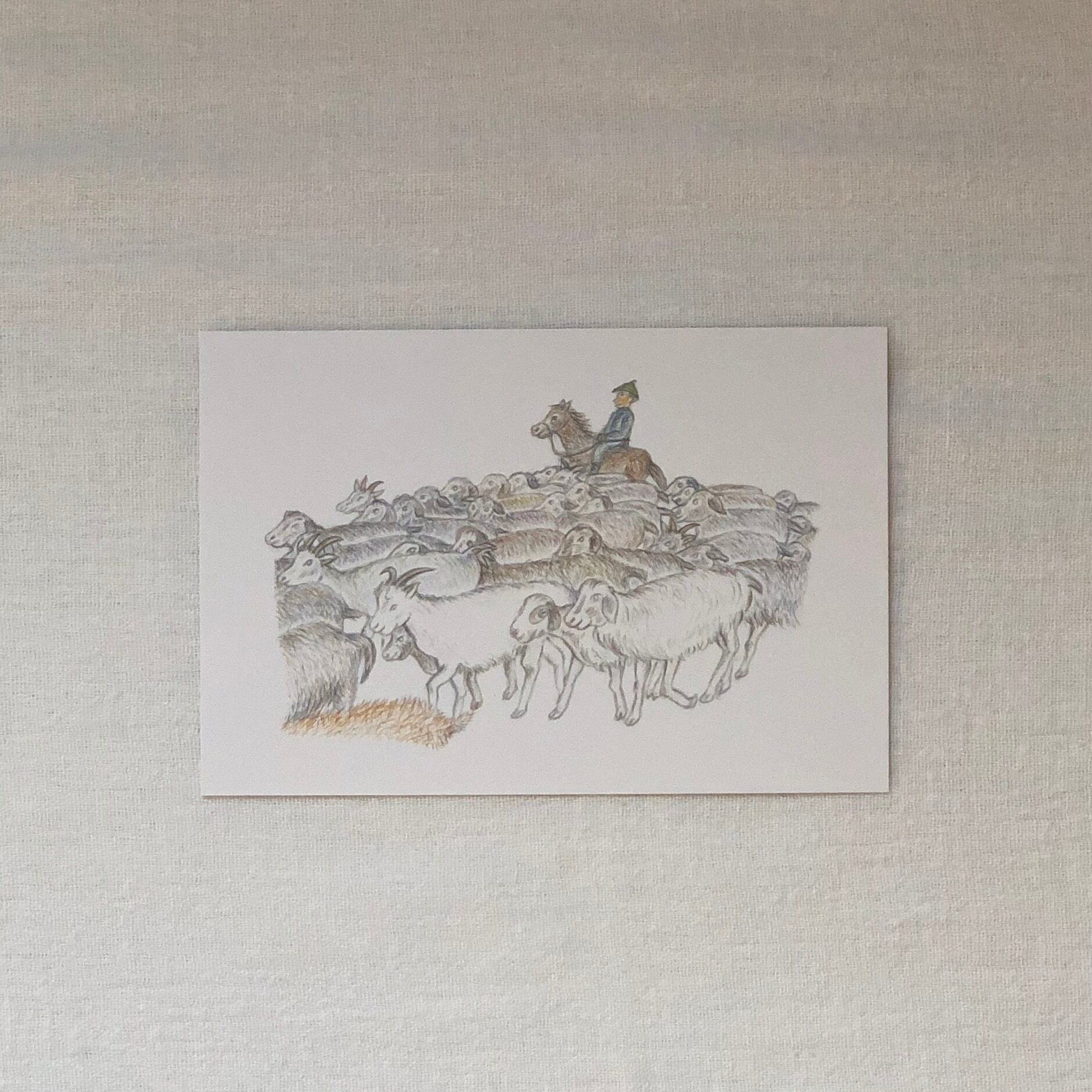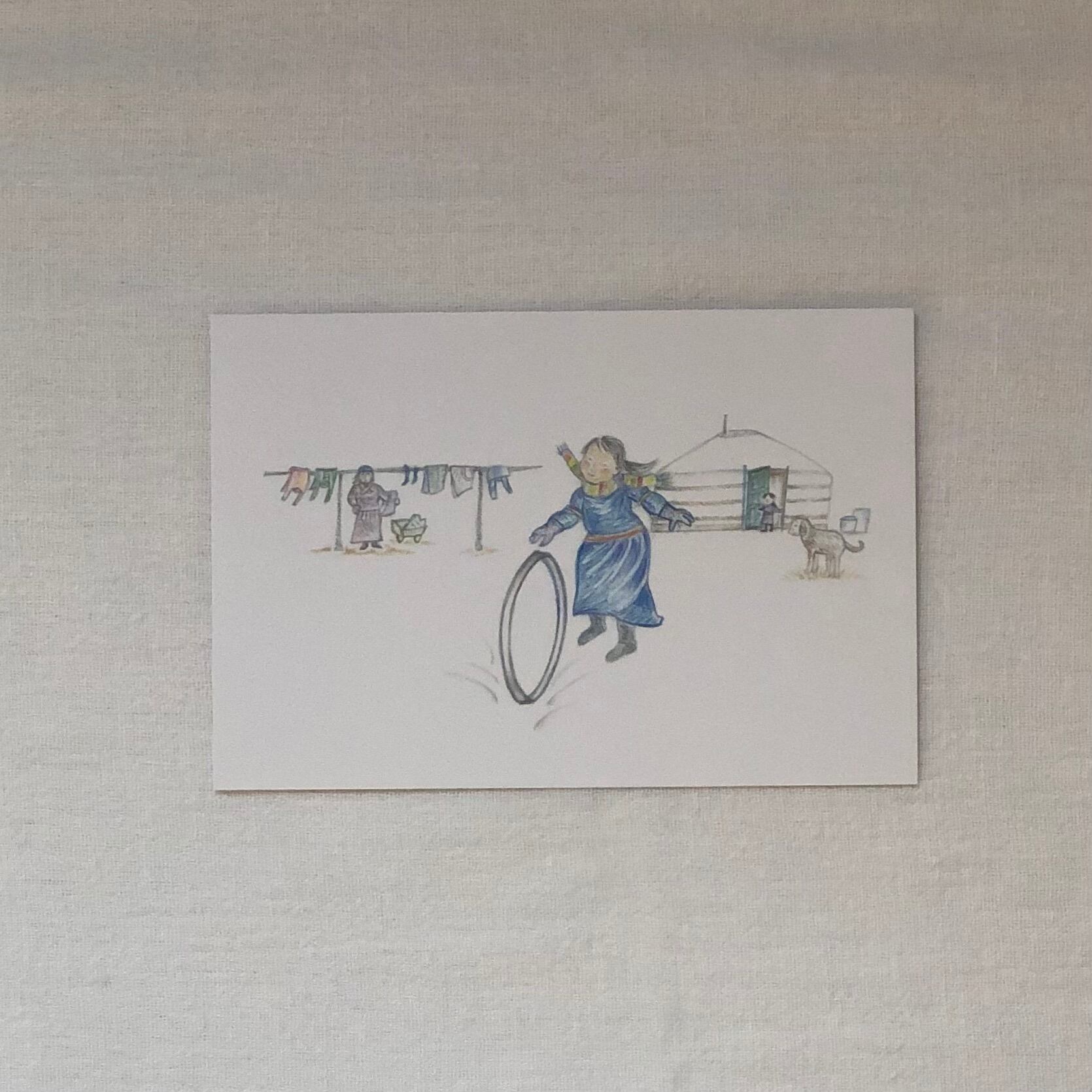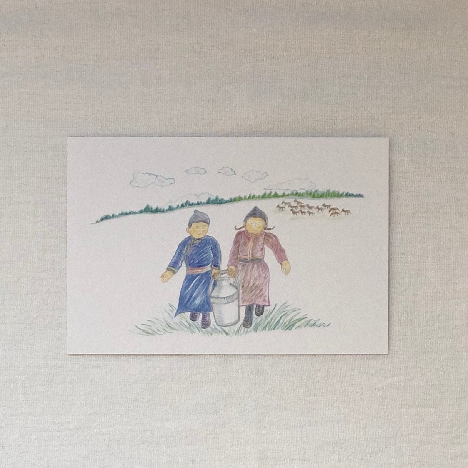 アリウナ先生の故郷・フルンボイル草原を中心に描かれたポストカードです。