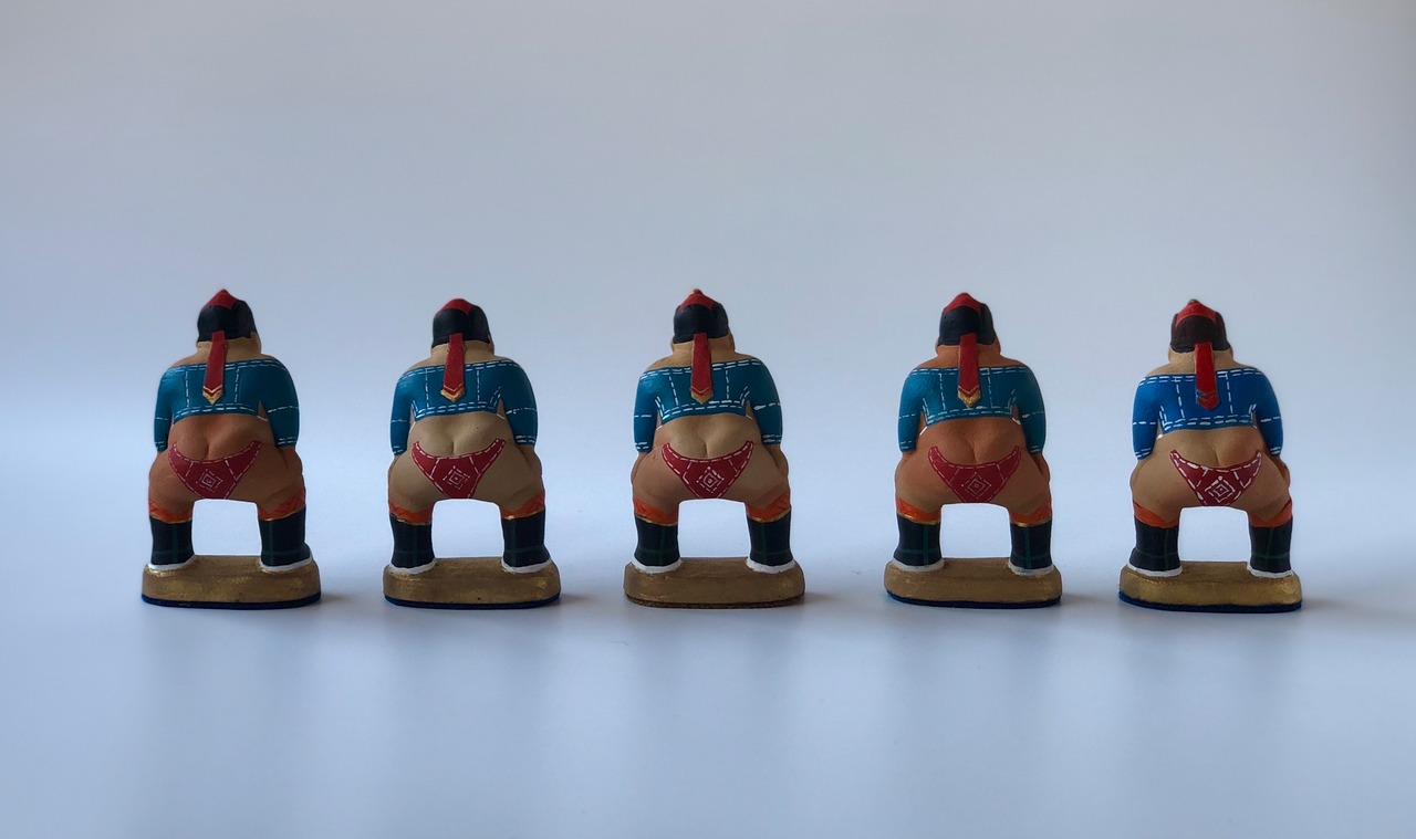 日焼けした力士に見えるものも。