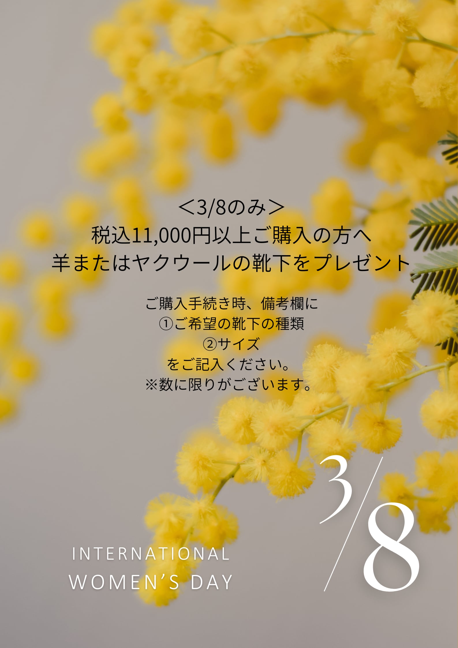 3/8のみ International Woman's Day 靴下プレゼント