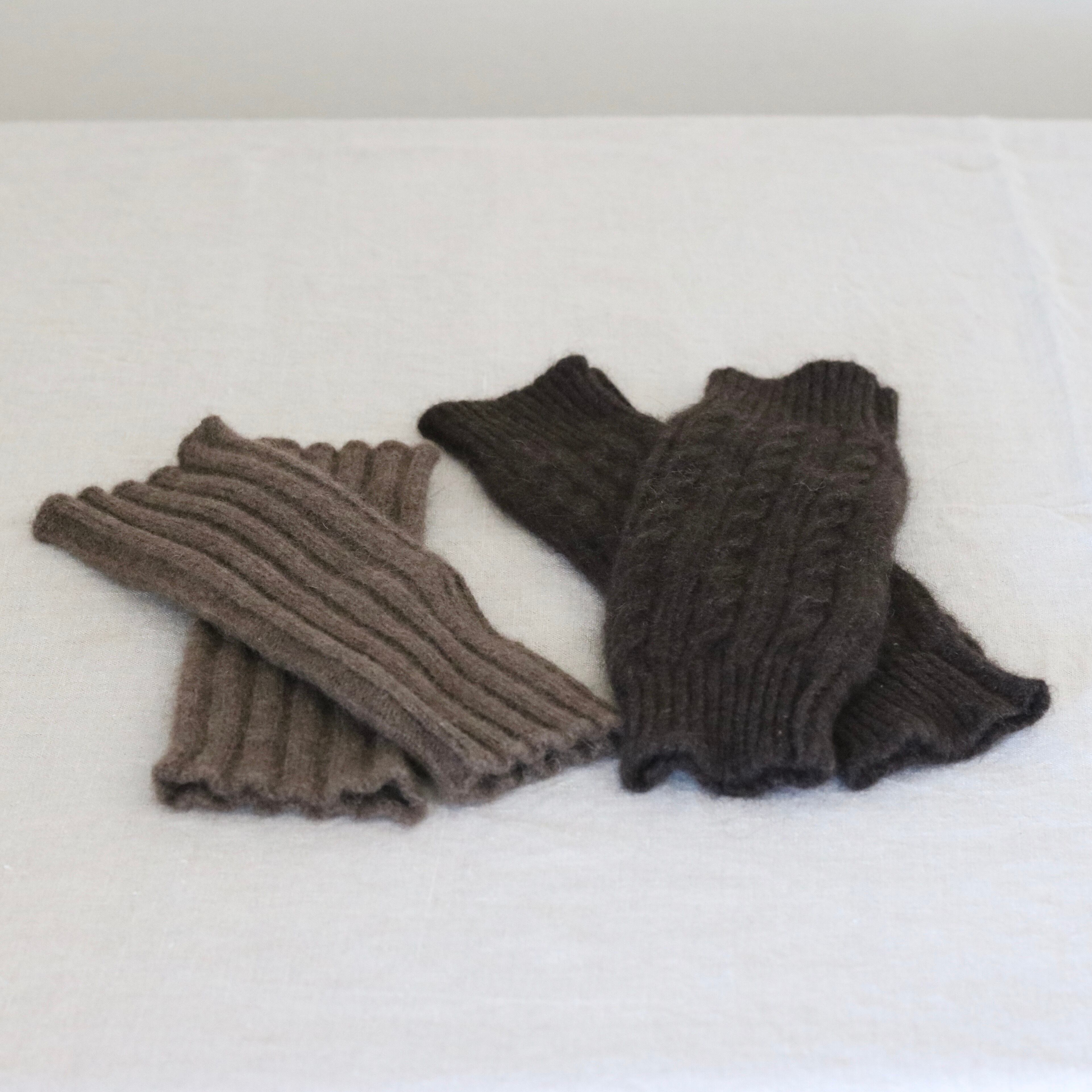 染色なしの自然の色のまま、アームウォーマーを編み立ててもらいました。