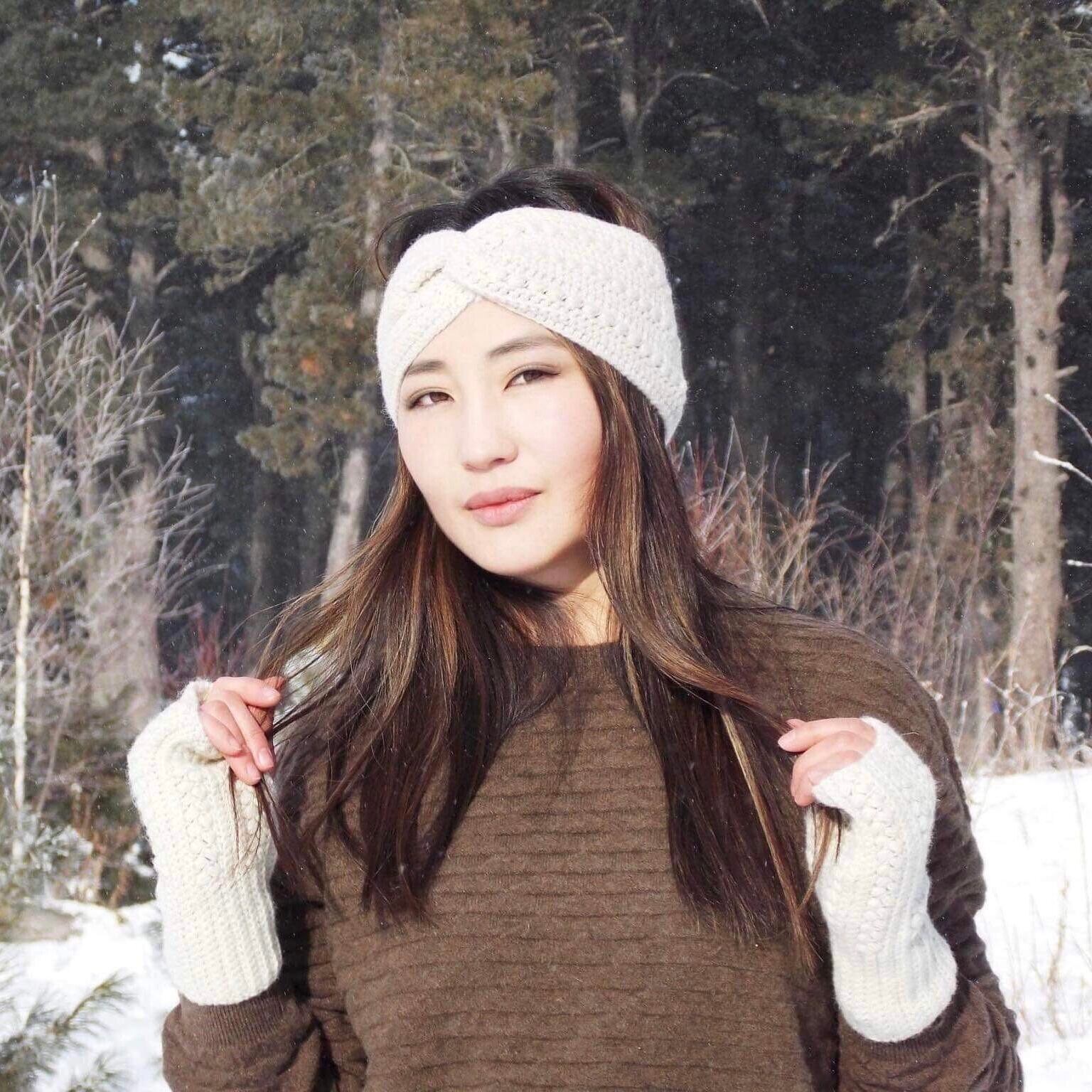 手編みのアームウォーマー